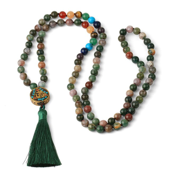 Terço Tibetano usado para meditação, Yoga e Ho'oponopono. Feito em pedra natural.